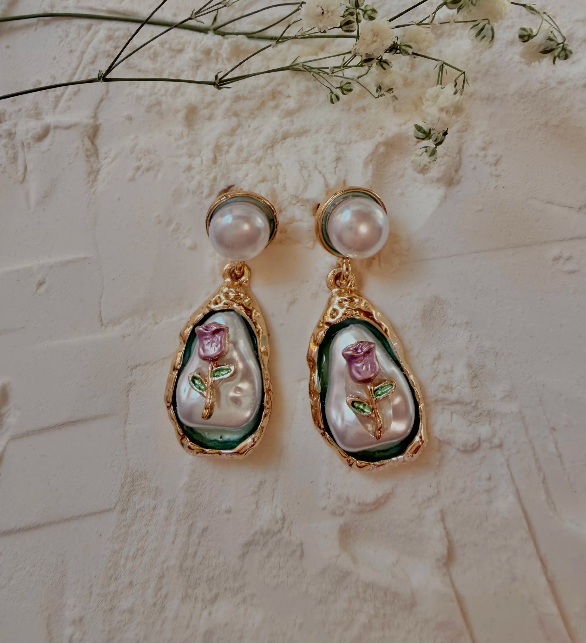 Eden Rose is one of the most mesmerising rose varieties, celebrated for its beauty and softness. These earrings by Aksheen grab inspiration from the Eden rose collection. Combining pearls, gold tones, and pastel-coloured roses, these anti-tarnish earrings offer an eye-catching look and are a must-have for your collection.